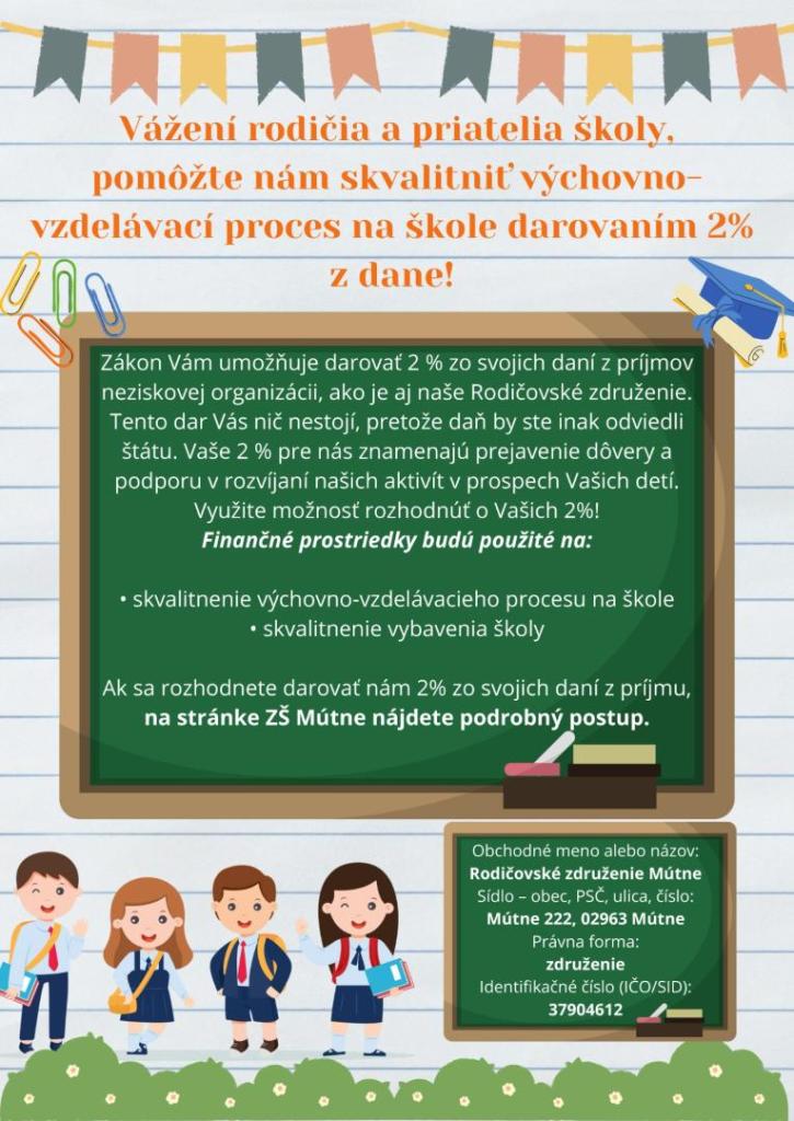 Darujte 2% svojich daní do našej školy pre svoje deti