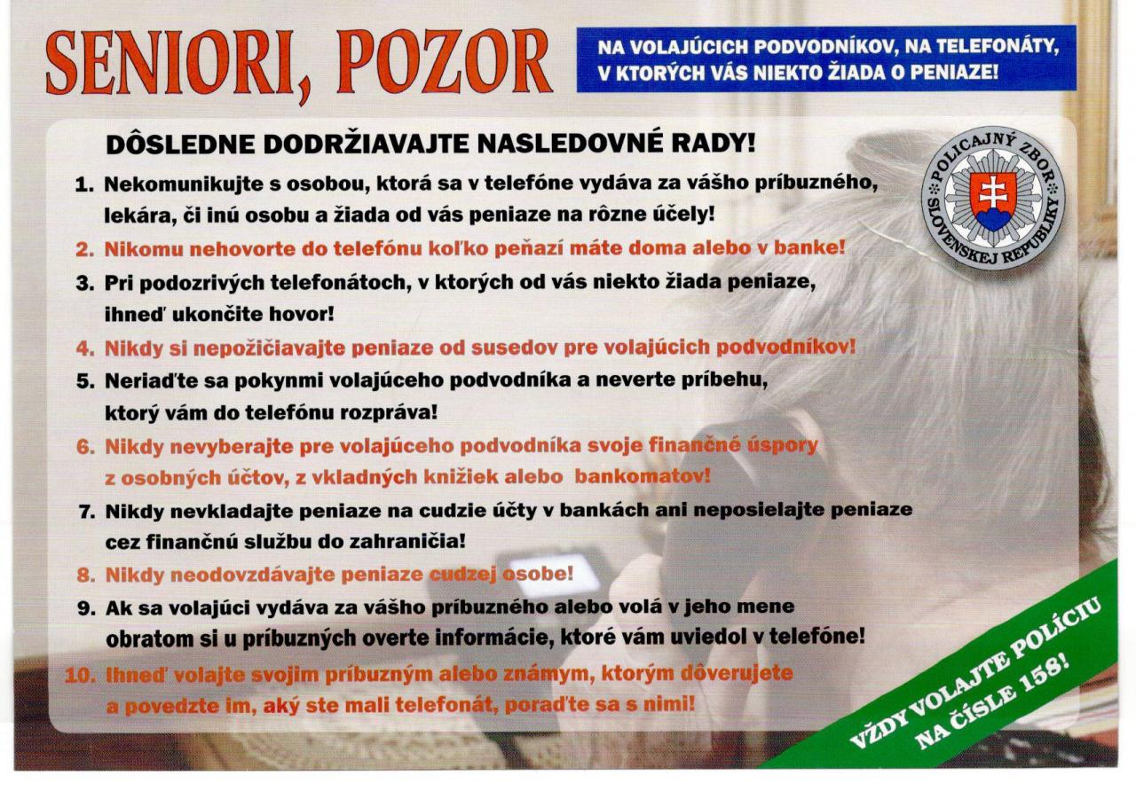 Prosíme vás, aby ste o predmetnej veci informovali svojich blízkych, najmä seniorov.